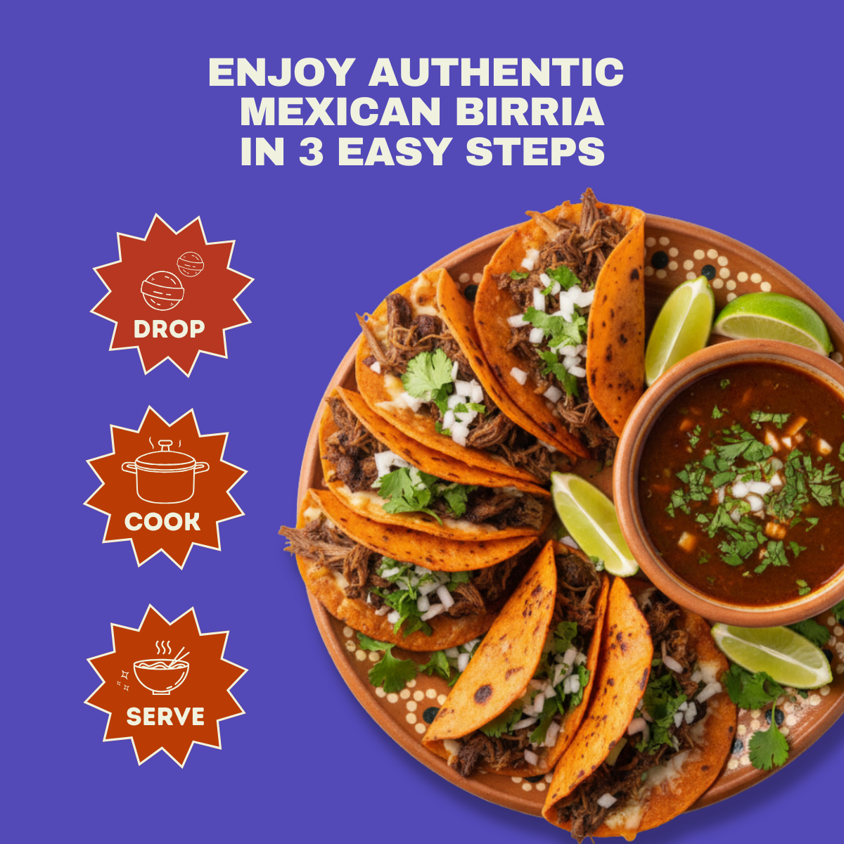 All you need is the birria bomb, beef chuck/brisket and water to create an authentic birria consomme. It's that simple!You can cook it using stove tops, slow cookers or crockpots.